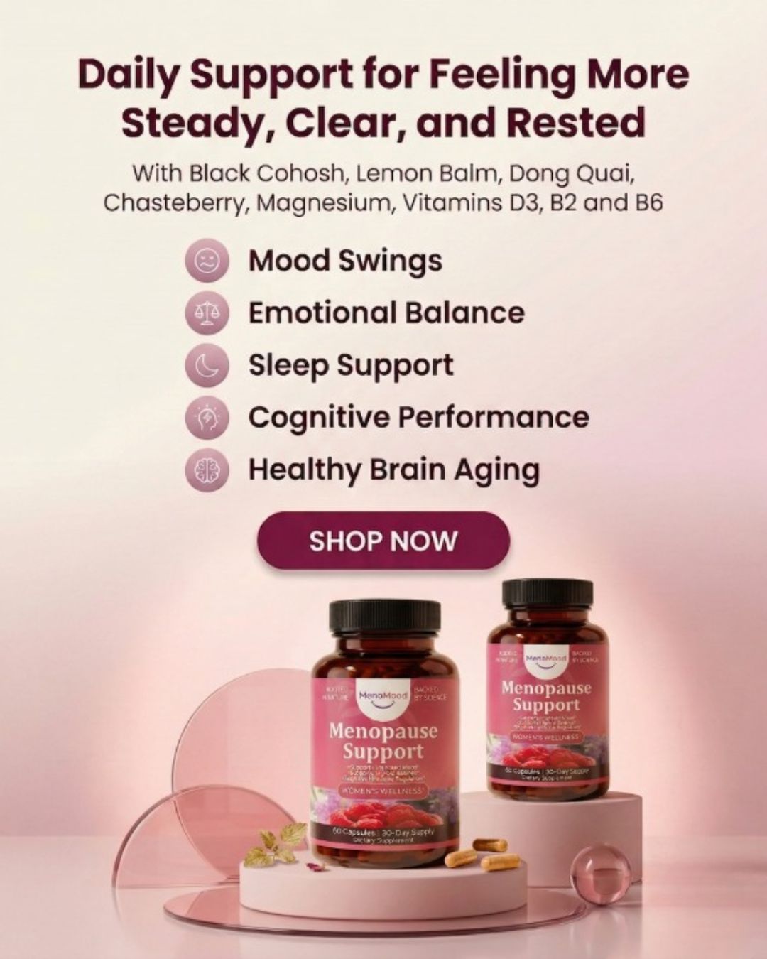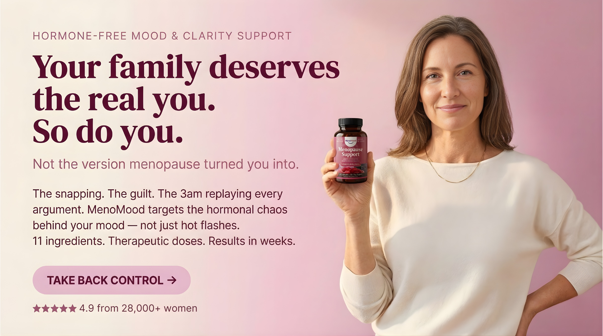 MenoMood was designed around the daily symptoms women often say affect them most: feeling emotionally off, sleeping badly, reacting too fast, and not feeling mentally clear. It is meant to be a daily layer of support that feels simple enough to stay consistent with.